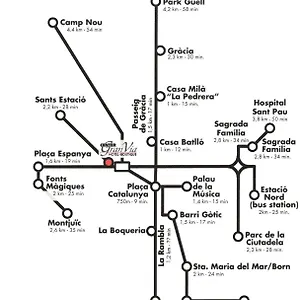 Das Hotel Center Gran Via ist in nur 10 Gehminuten Entfernung vom Busbahnhof Busplana Barcelona gelegen.